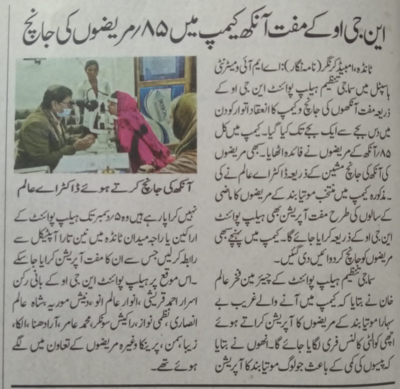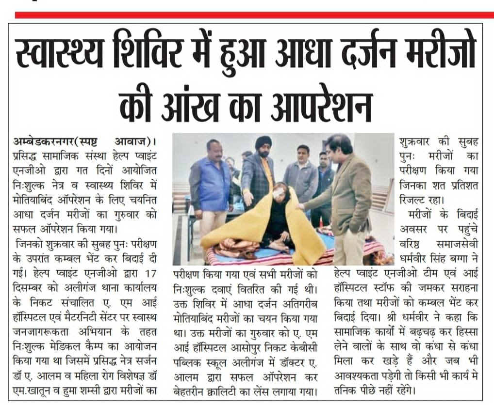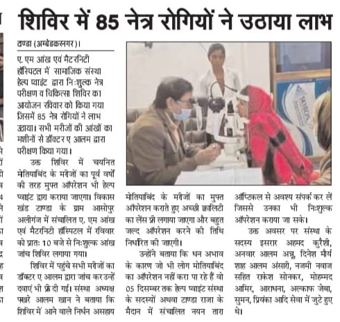 फ्री मेडिकल कैम्प/मोतियाबिंद ऑपरेशन
